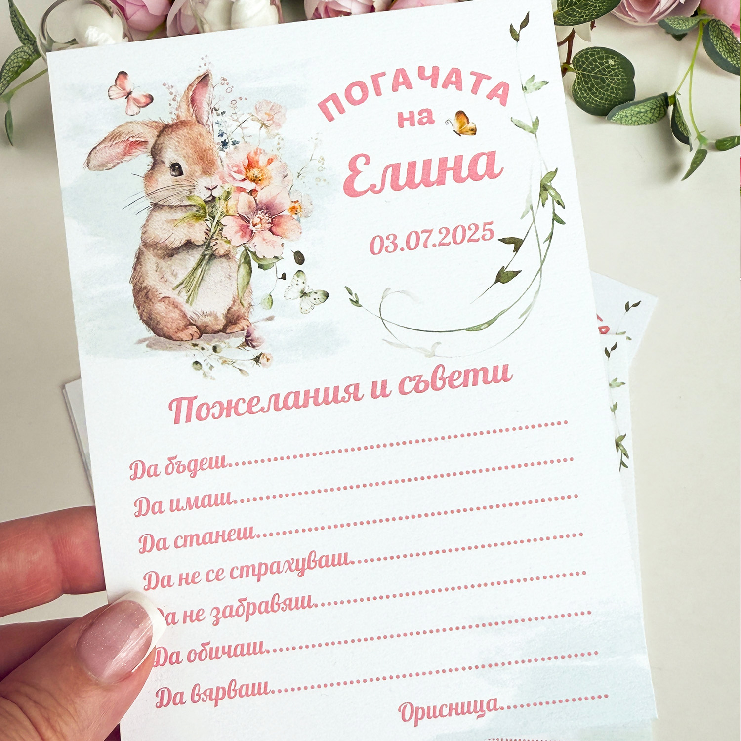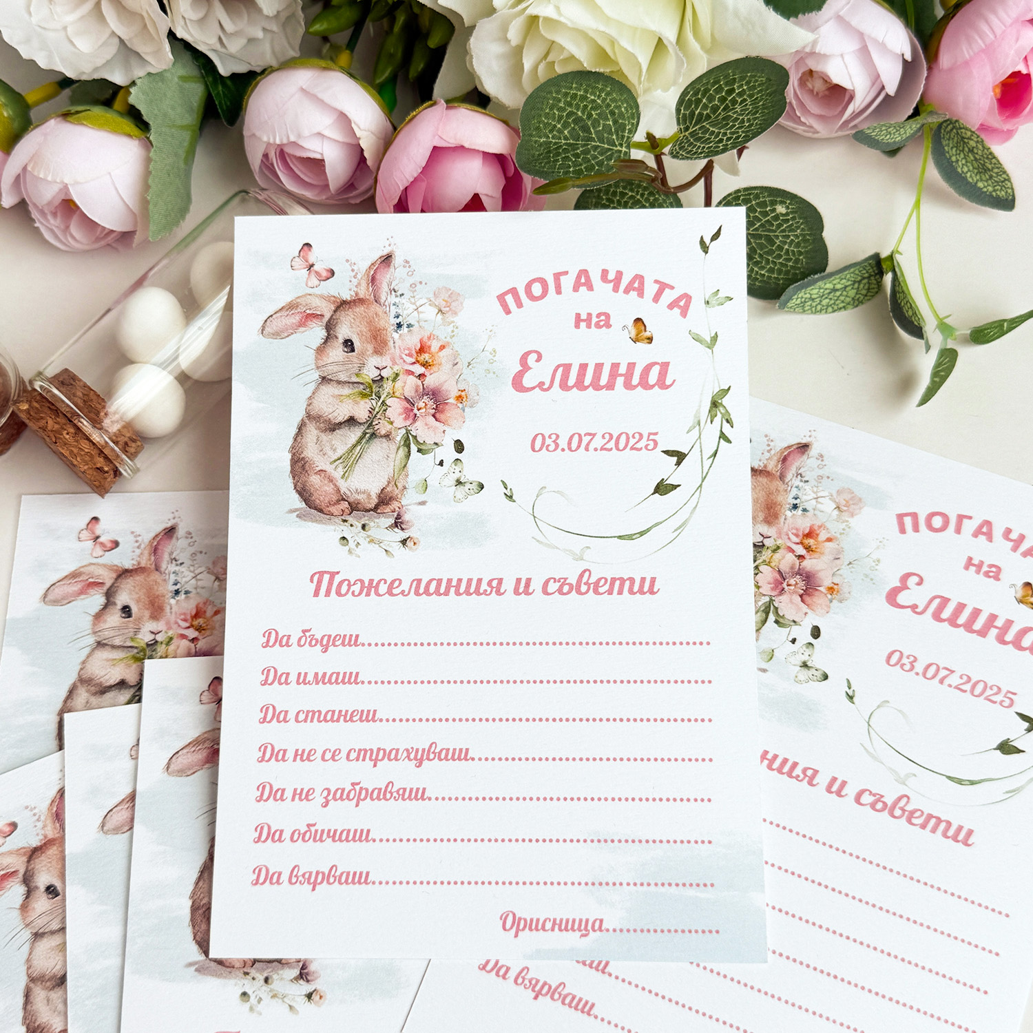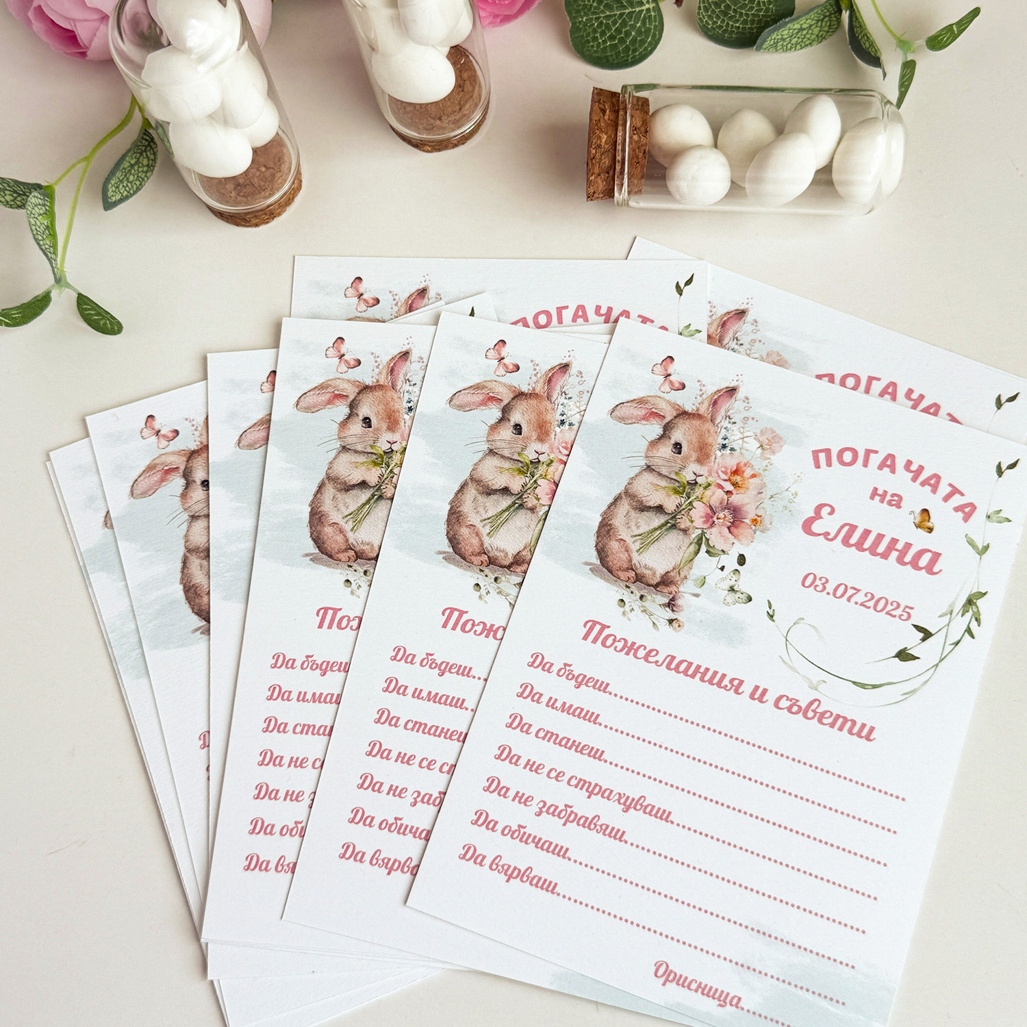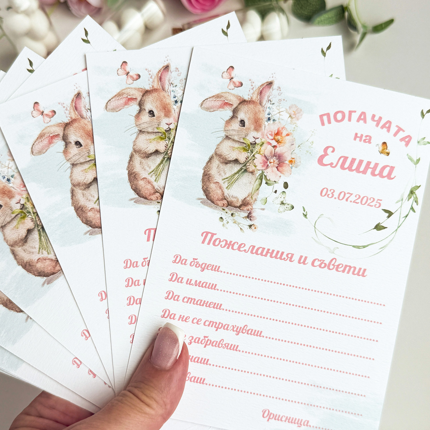 Картички за наричане на бебе със сладко зайче и място за пожелания