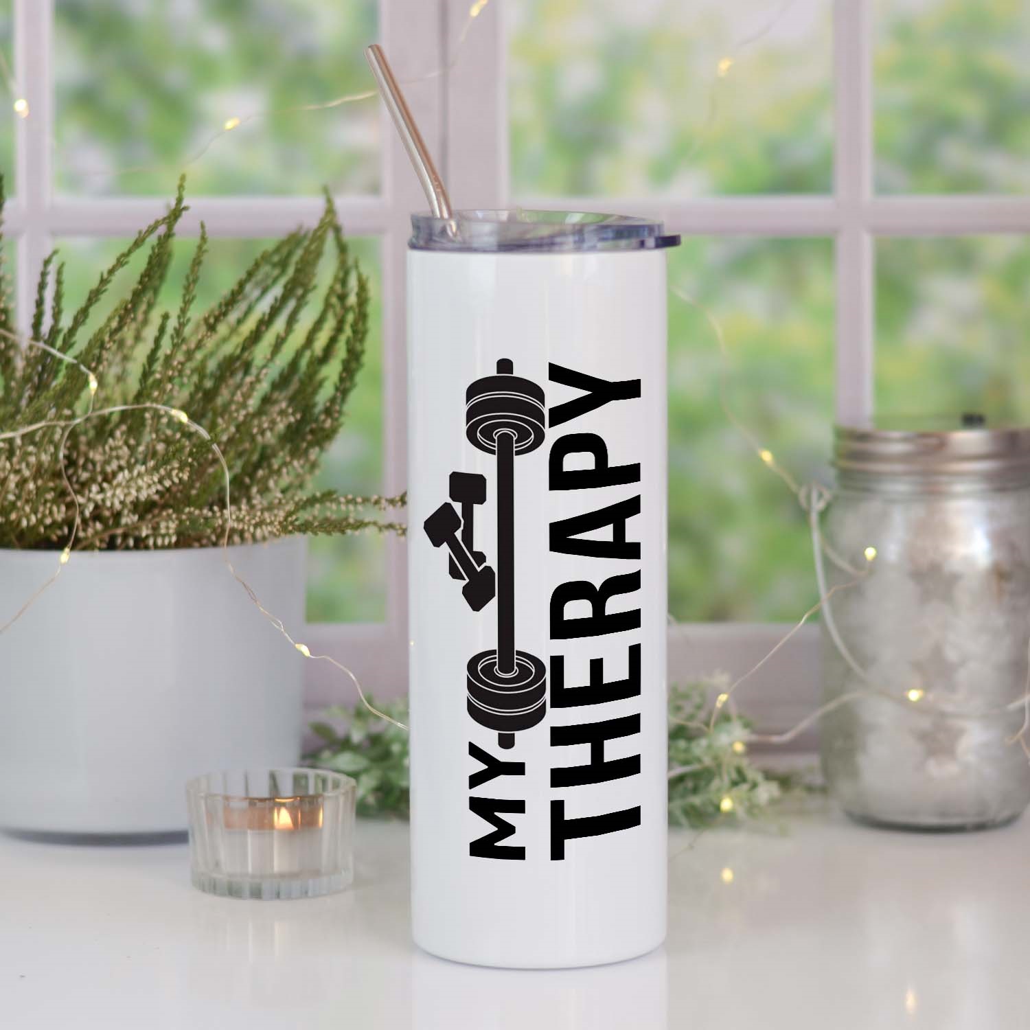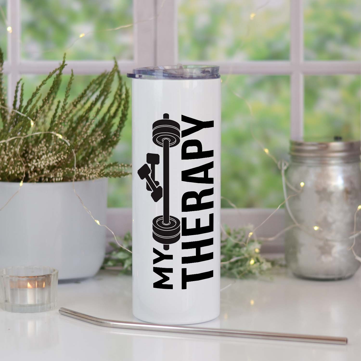 Метална фитнес термочаша с надпис “ My Therapy”