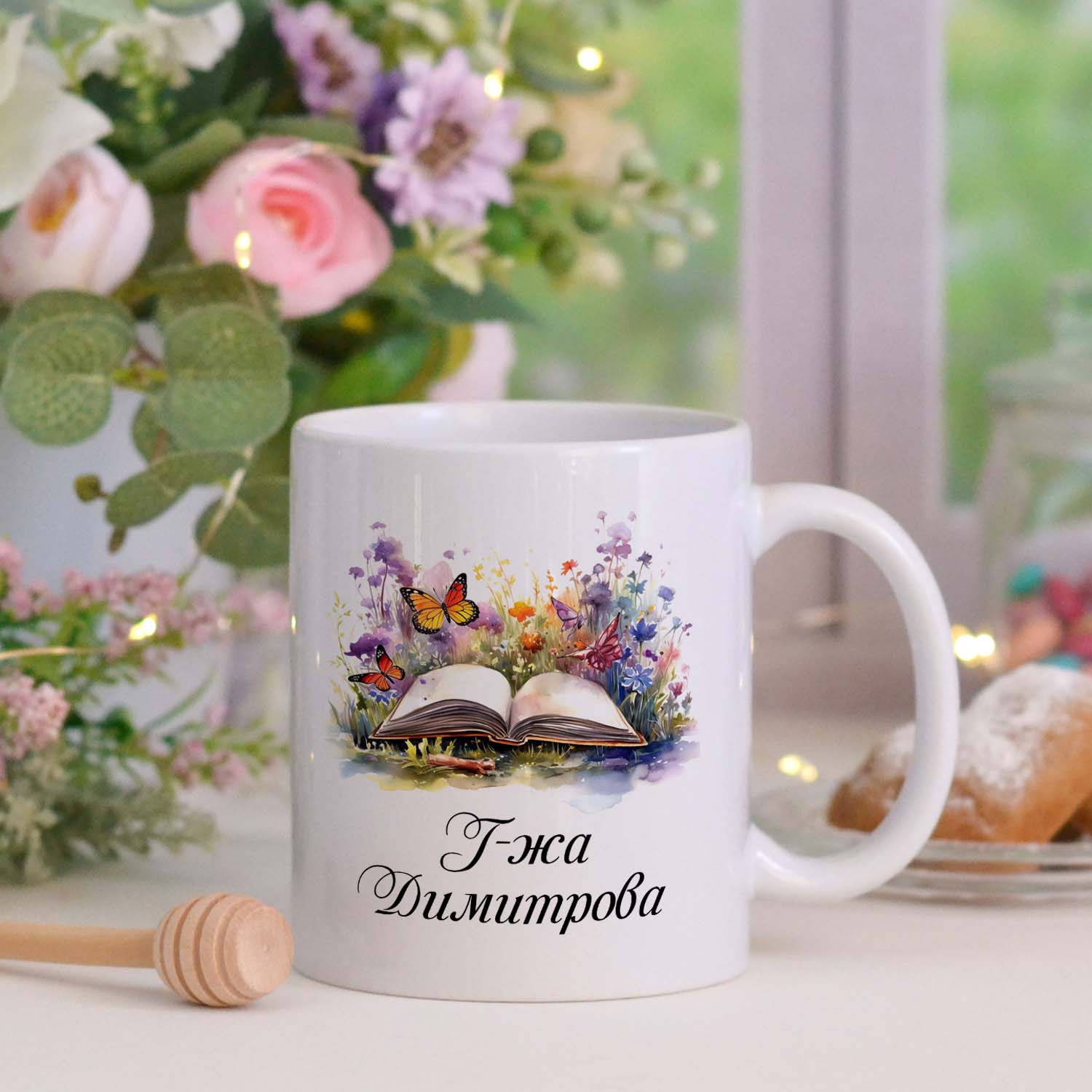 - Дизайн с книга, цветя и пеперуди;