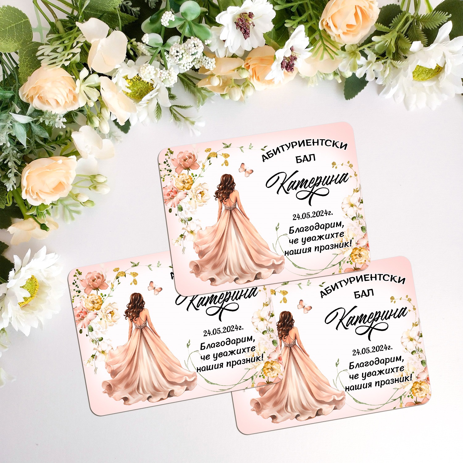 Магнити за абитуриентски бал на момиче в цвят розова праскова
