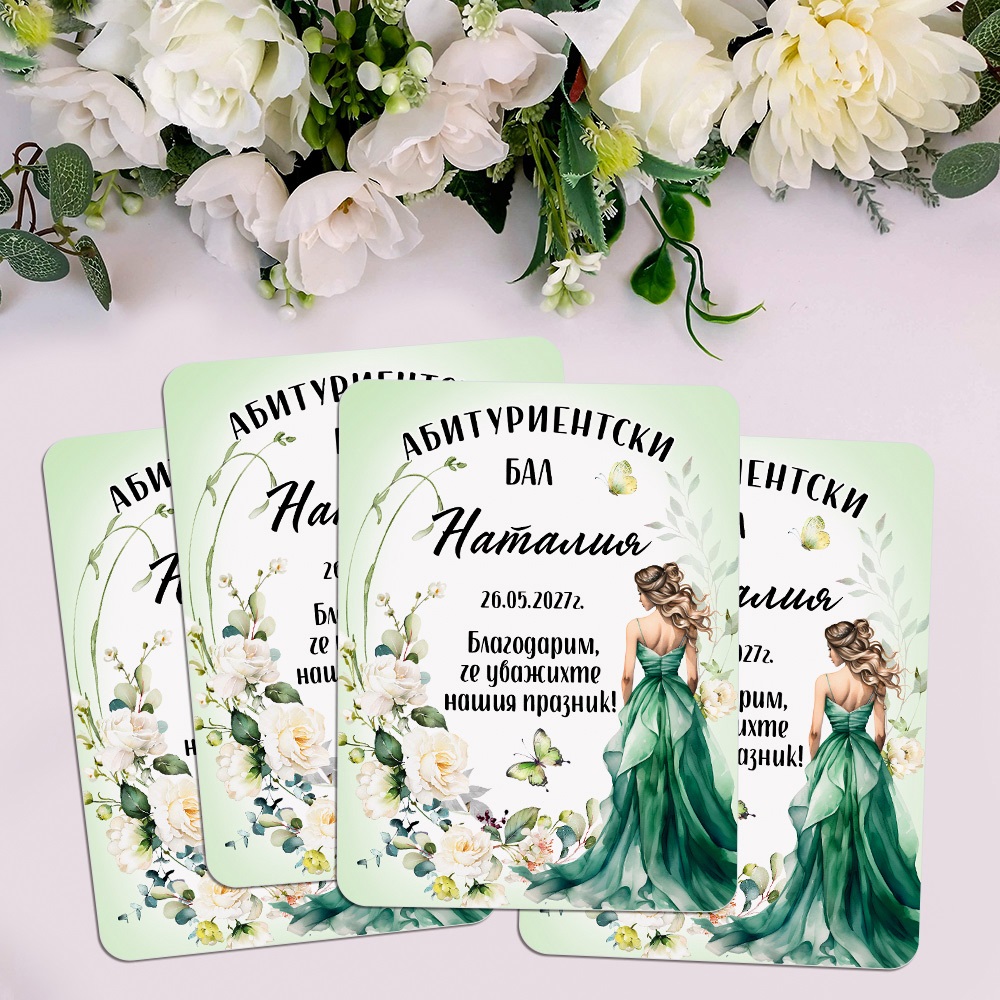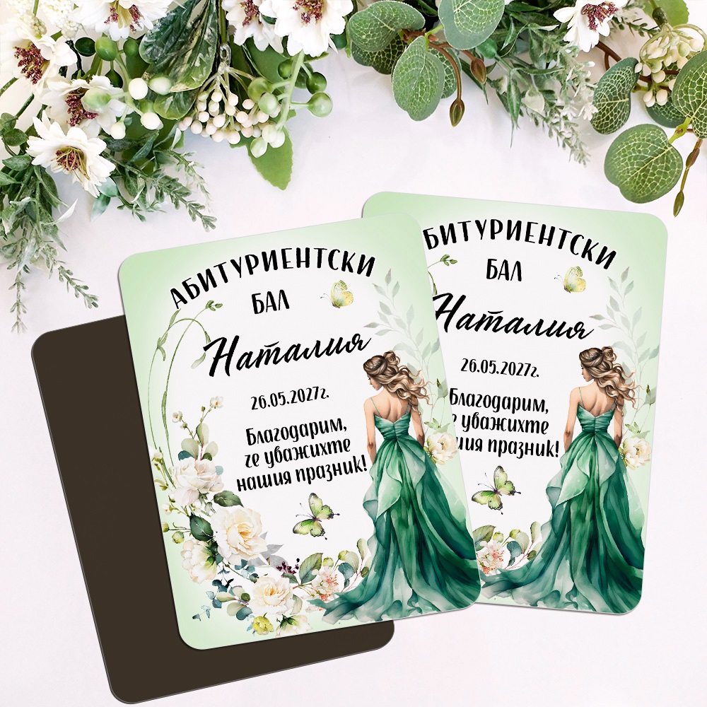 Магнити за абитуриентски бал - Момиче със зелена рокля