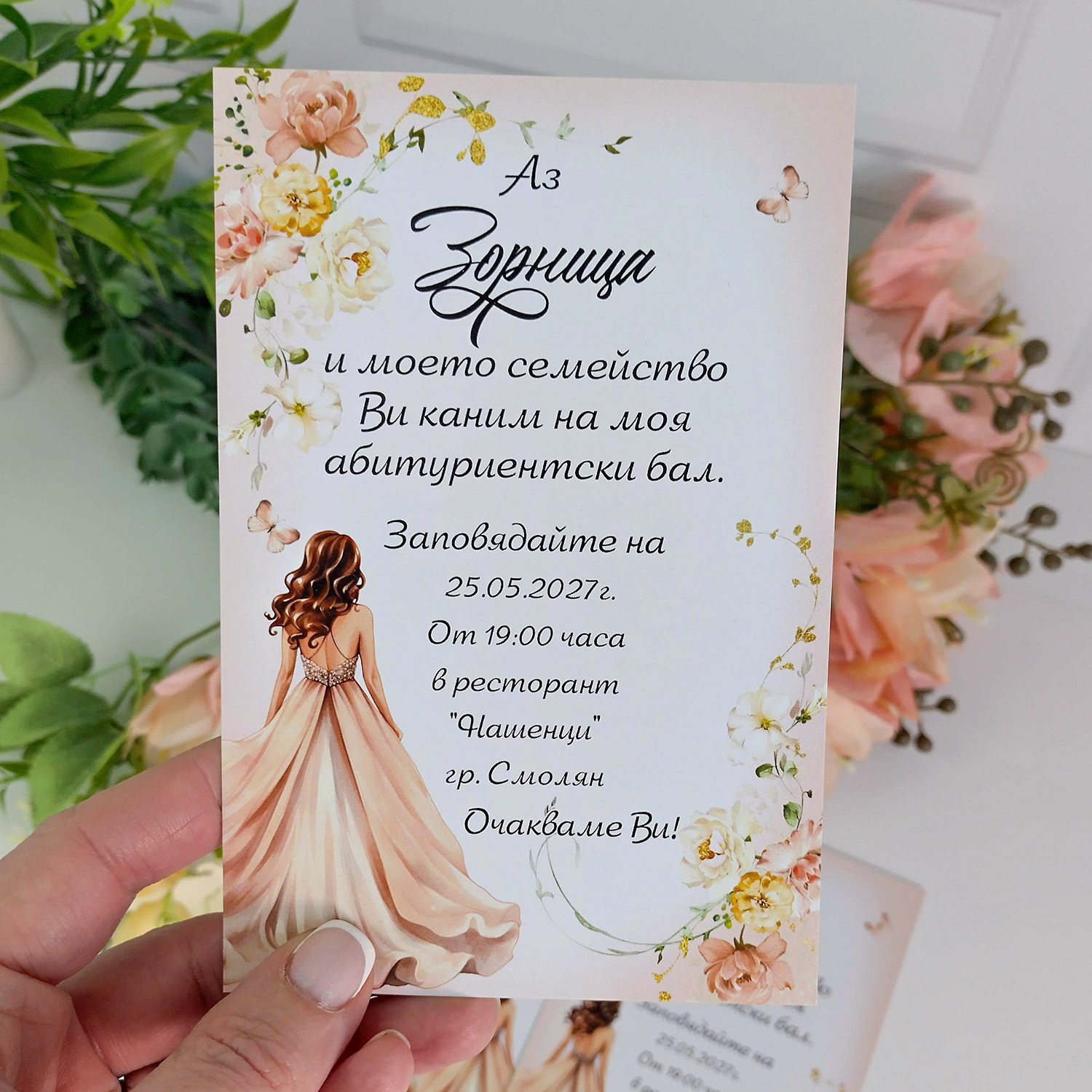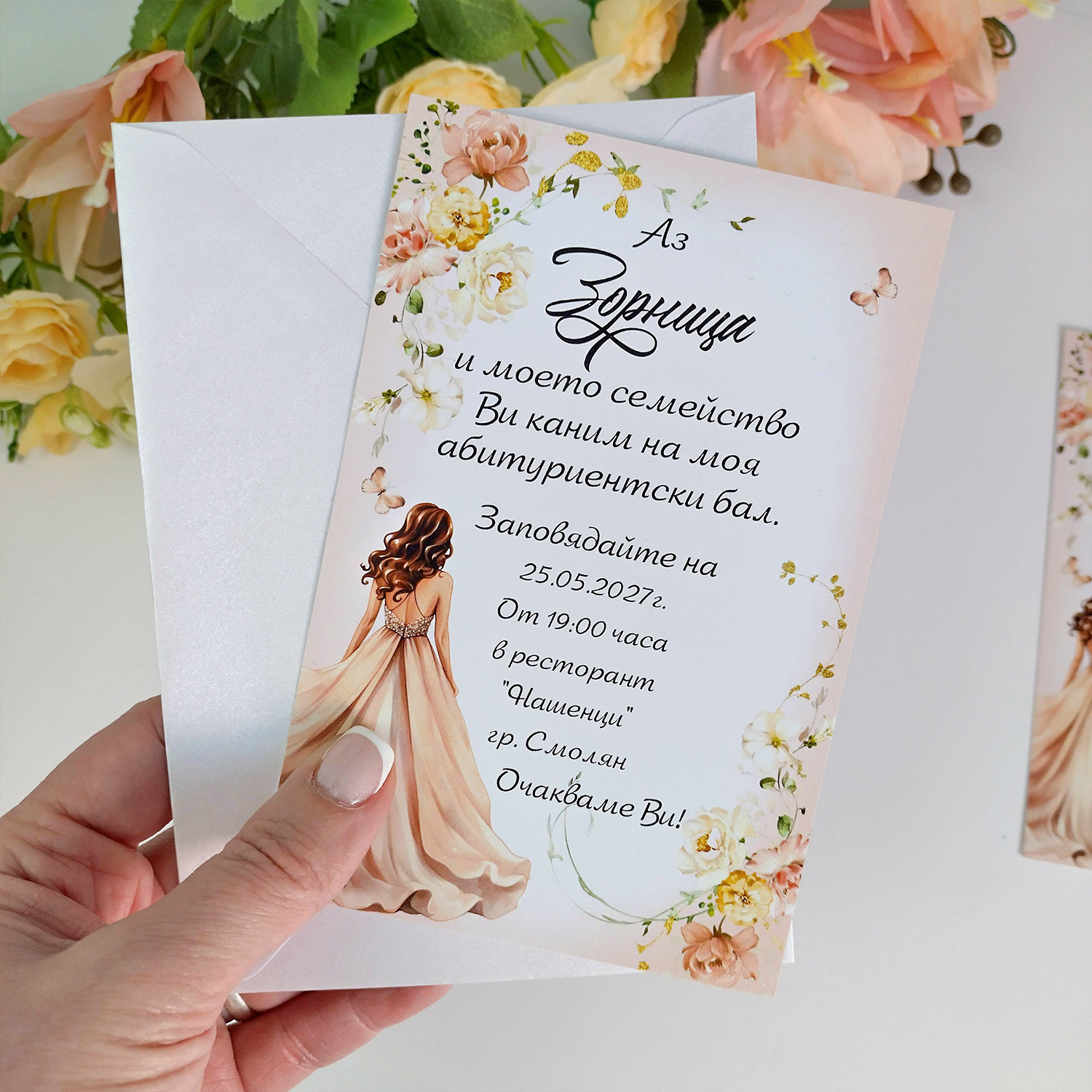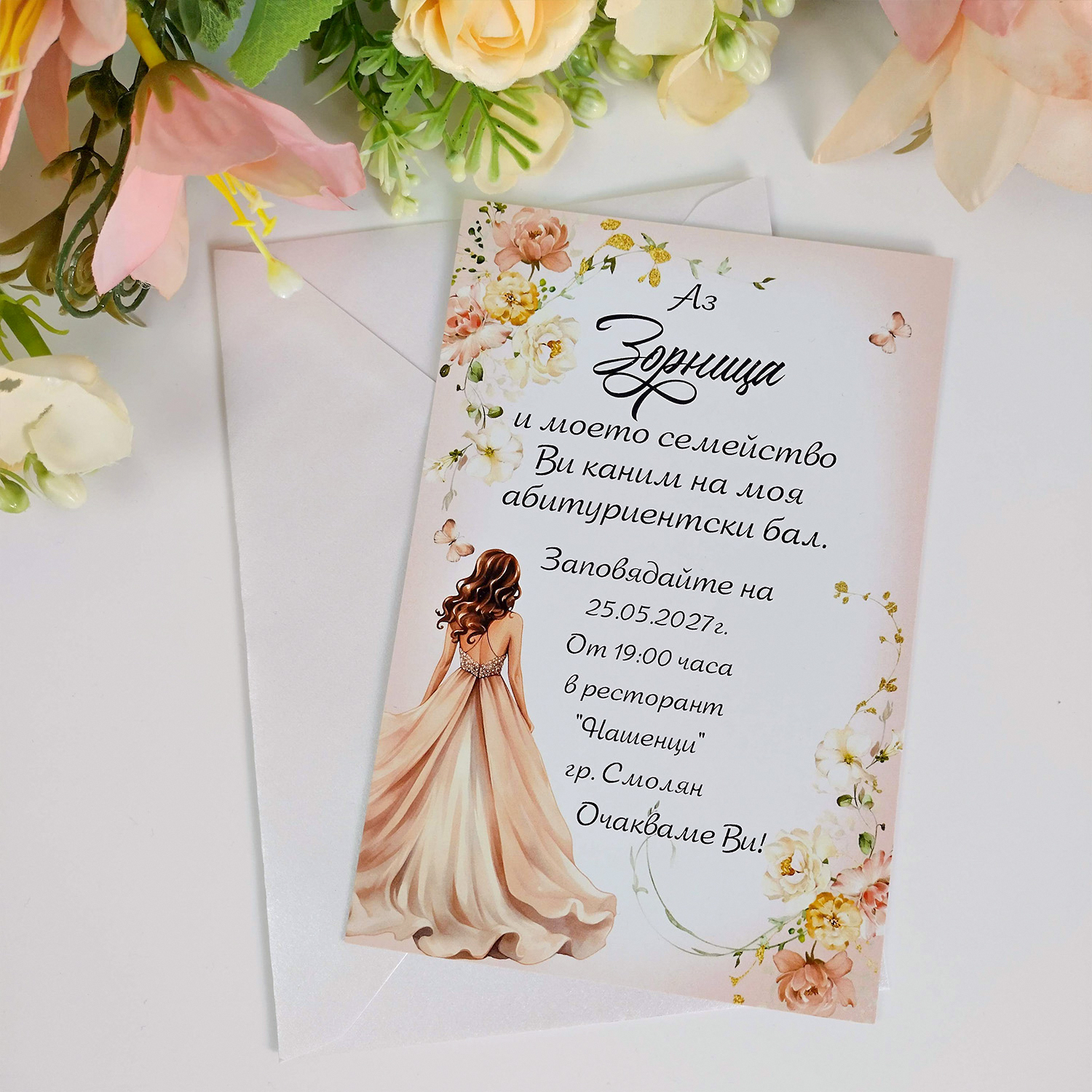 Покана за бал на момиче в бежова рокля | Gifty.BG