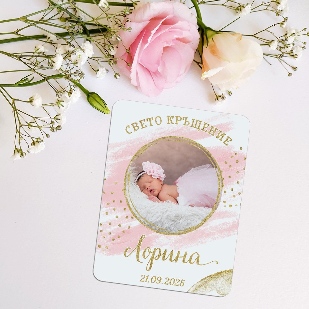 Магнити със снимка за кръщене на момиче в розово