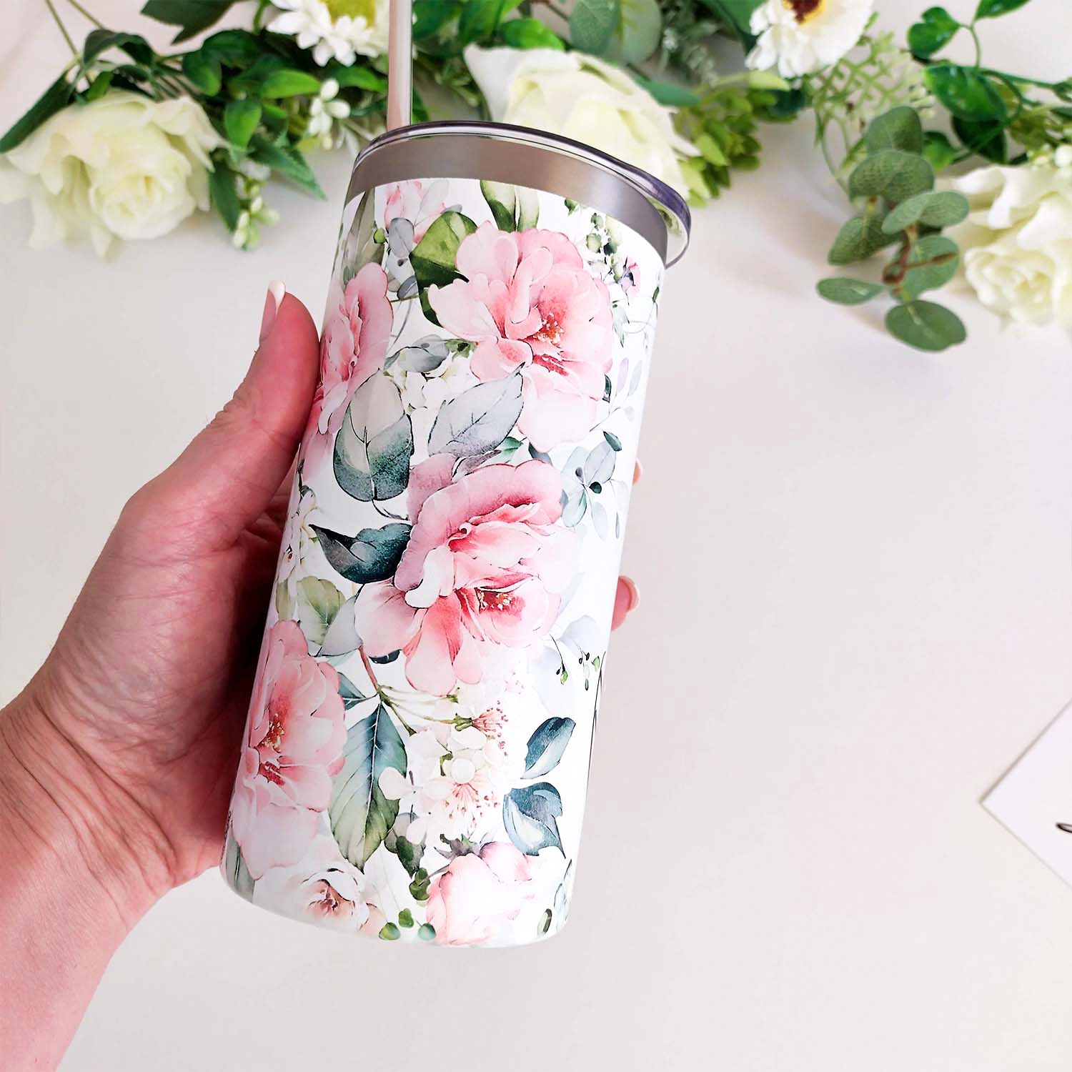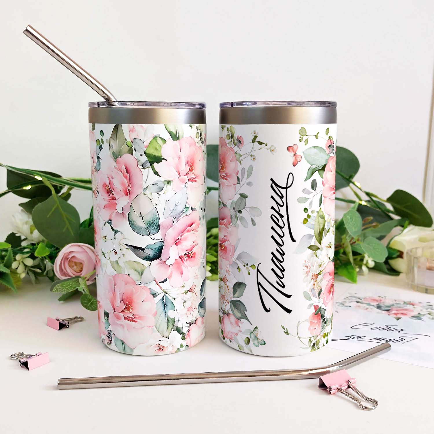 Персонализирана флорална термочаша за жена | Gifty.BG