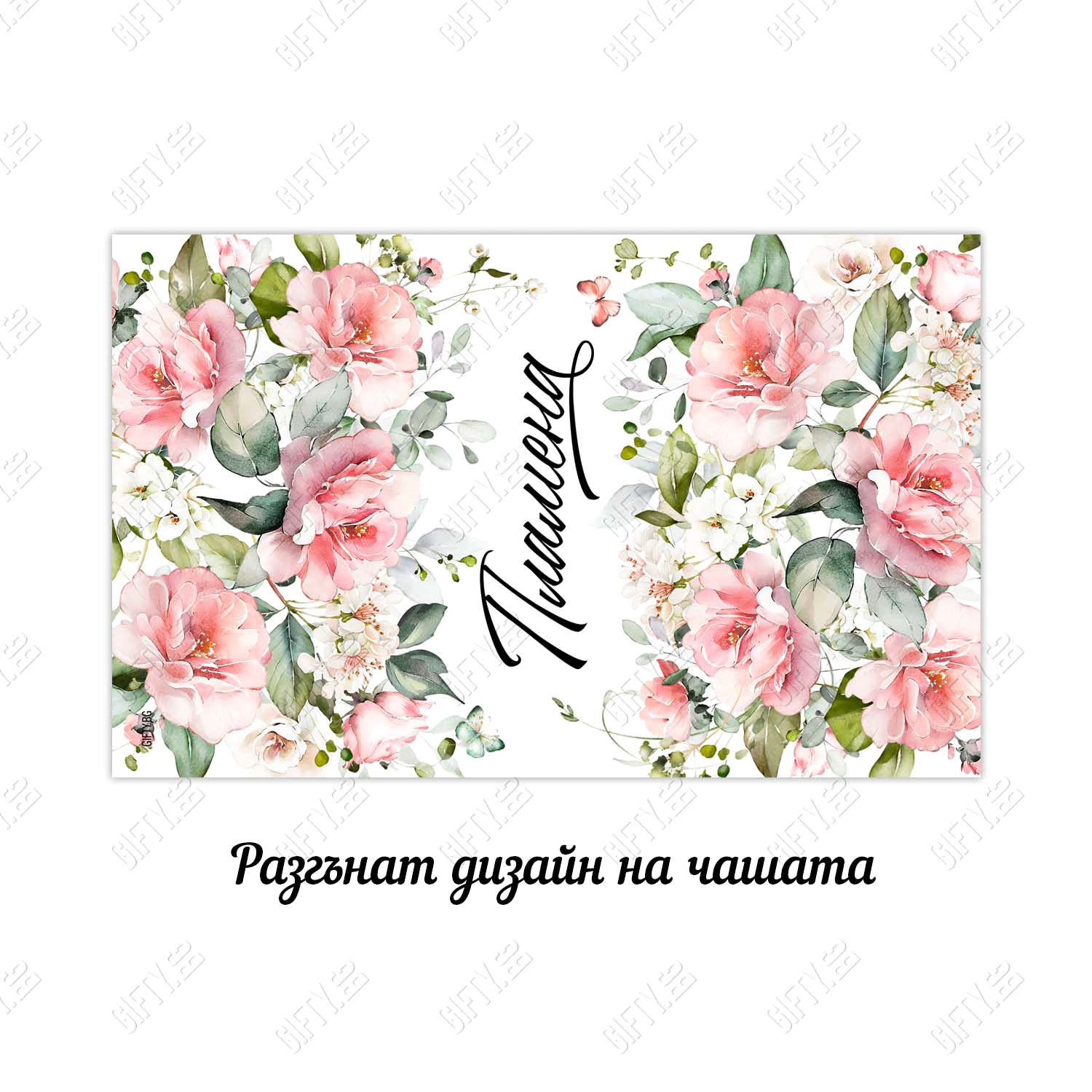 Термочаша с цялостен принт с красиви цветя и персонализирана с име